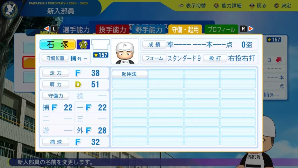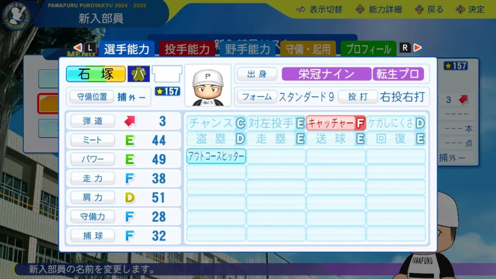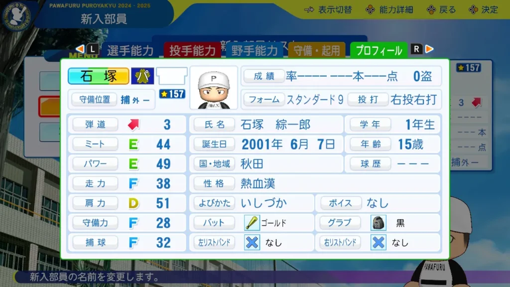 【栄冠ナイン2024-2025】石塚綜一郎の能力一覧