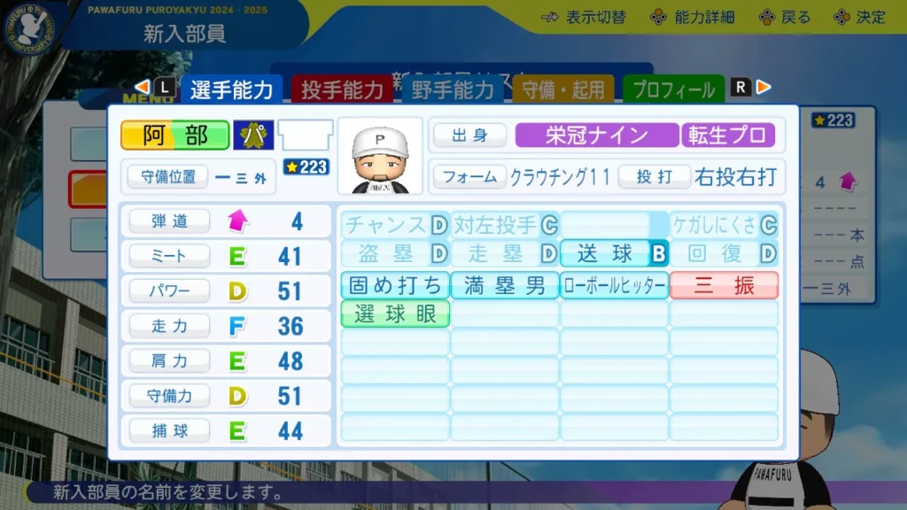 【栄冠ナイン2024-2025】阿部寿樹の能力一覧